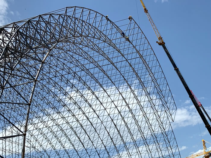 (2)网架加工前应对现场尺寸进行复测,确认无误后方可进行加工、安装;网架制作、运输、安装应遵守《空间网格结构技术规程》JGJ7-2010、《钢网架江北螺栓球节点》JG/T 10-2009、《钢网架江北螺栓球节点用高强度螺栓》 GB/T 16939-2016、《江北钢结构江北工程江北施工规范》 GB50755-2012、《江北钢结构江北工程施工质量验收标准》 GB50205-2020。